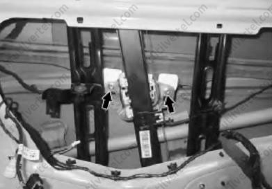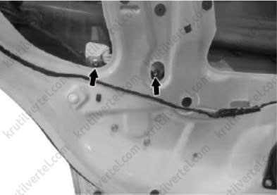 5. Выкрутить 2 болта крепления стекла передней двери к стеклоподъемнику, как показано на изображении ниже.