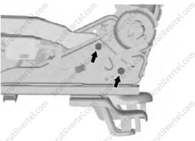 3. Выкрутить два болта крепления спереди сиденья, как показано на изображении ниже.