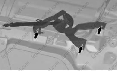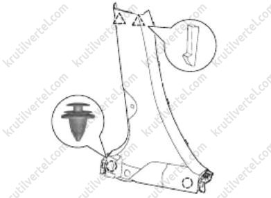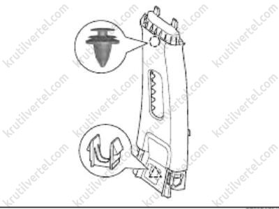 13. Снять фиксатор и зажим крепления, после чего снять верхнюю защитную панель стойки В.