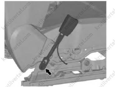 3. Выкрутить болт крепления, отсоединить вставку ремня безопасности от фиксатора ремня безопасности и снять замок ремня безопасности переднего сиденья.