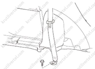 12. Выкрутить анкерный болт, соединяющий устройство регулировки высоты с ремнем безопасности, как показано на изображении ниже.