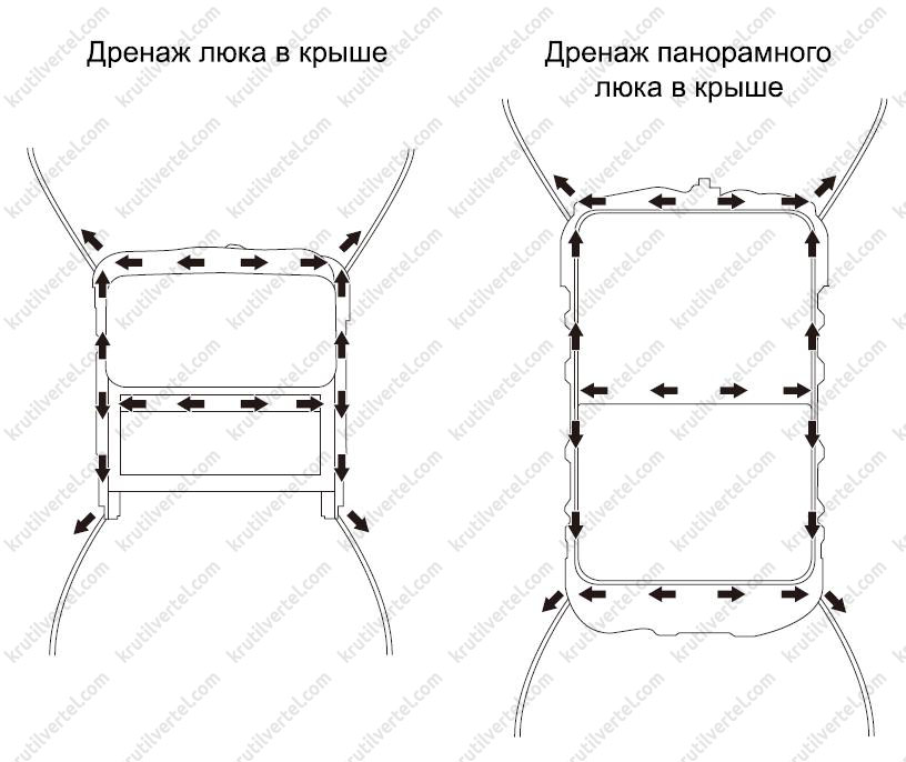 Обслуживание дренажной системы люка осуществляется вместе с проведением планового технического обслуживания и ремонта автомобиля.