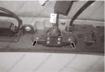 6. Выкрутить два болта крепления и снять камеру заднего вида, как показано на рисунке ниже.