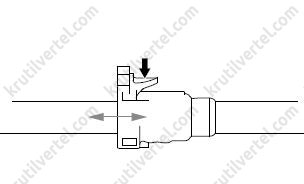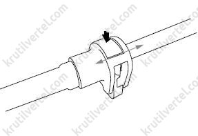 1. Переместите по стрелке серое ушко задвижки и вытяните в обратном направлении соединители трубопровода.