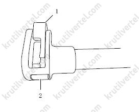 На рисунке 1 обозначает защелку, 2 — кнопку.