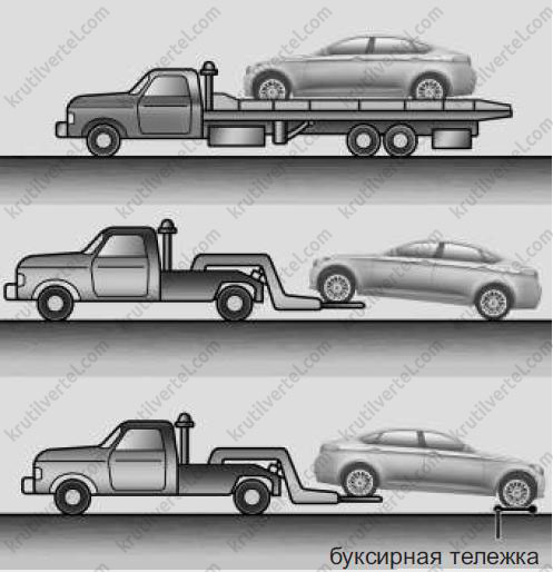 В случае буксировки эвакуатором, когда подкатные тележки не используется, всегда должна подниматься передняя часть транспортного средства, а не задняя.