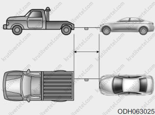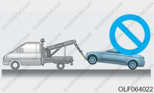 - Недопустима буксировка транспортного средства, если передние колеса касаются земли. Это может вызвать повреждение транспортного средства.