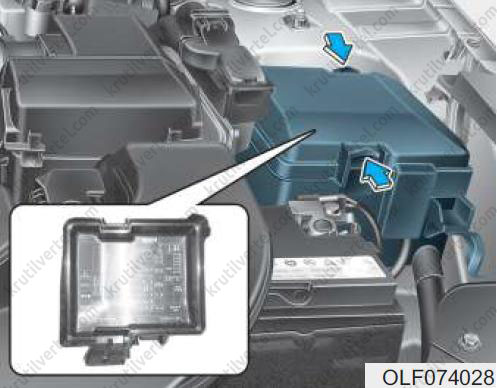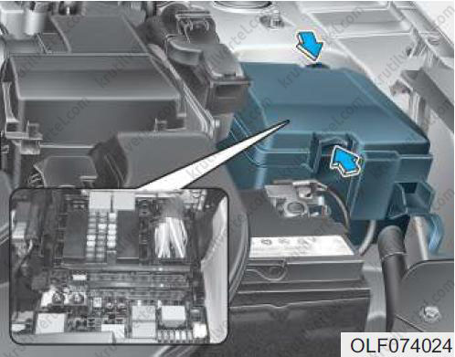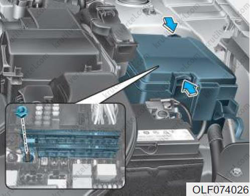 - Не извлекайте предохранители, реле и клеммы, закрепленные болтами или гайками. Предохранители, реле и клеммы могут быть не полностью закреплены, что может привести к пожару. Если перегорают предохранители, реле или клеммы, закрепленные болтами или гайками, рекомендуется обратиться к авторизованному дилеру HYUNDAI.