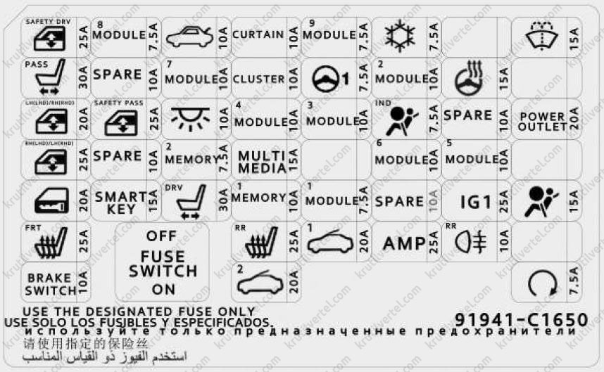 Фактическая табличка на панели предохранителей/реле может отличаться от установленных элементов.