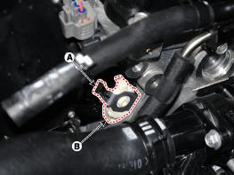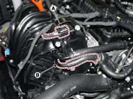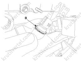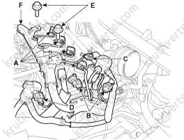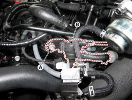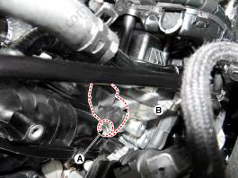 4. Отсоедините вакуумную трубку (В) впускного коллектора, чтобы освободить рабочее пространство.