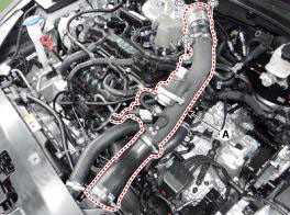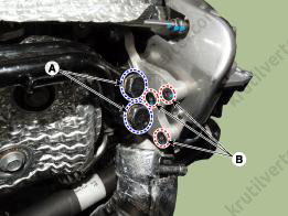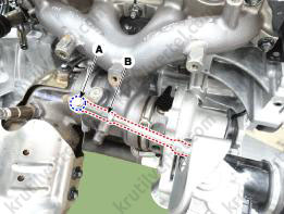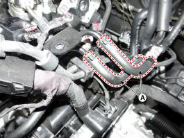 6. Отвернув болты (А), отсоедините трубки охлаждения турбокомпрессора.