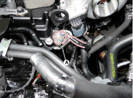 2. Отсоедините электрический разъем (A) датчика OTS.