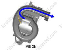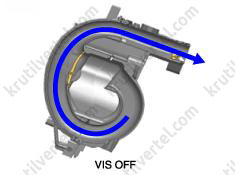 Привод системы переменного наддува усиливает воздушный вихревой поток внутри цилиндра, улучшает характеристики сгорания и повышает крутящий момент двигателя и эффективность расхода топлива на низких и средних оборотах. ЕСМ управляет работой электродвигателя и контролирует VCMA. VCMA обычно находится в закрытом состоянии и создает воздушный вихревой поток при запуске двигателя автомобиля. При ускорении автомобиля и достижении приблизительно 2600 об/мин привод задействует заслонку VCM (открывает) и обеспечивает забор воздуха.