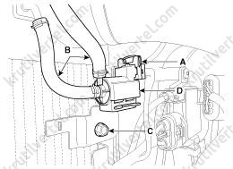 4. Отверните болт крепления (С), затем снимите электромагнитный клапан управления RCV (D).