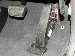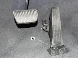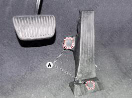 4. Отверните болты крепления (А) и снимите модуль педали акселератора.