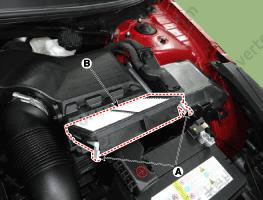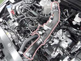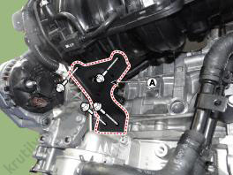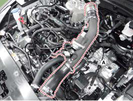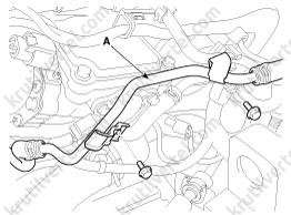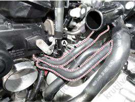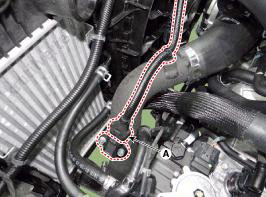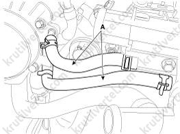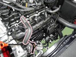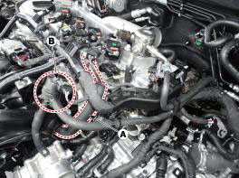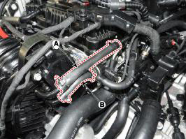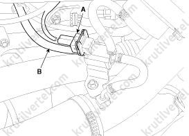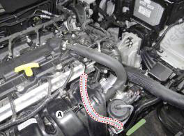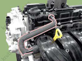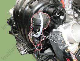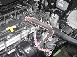 - Отсоедините шланг сапуна (А) и вакуумный шланг (В) (при наличии).