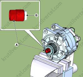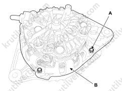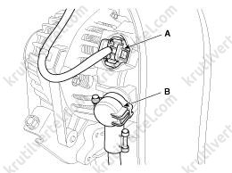 e. Отсоедините выходной провод генератора переменного тока от вывода «B» генератора.