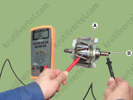 a. Показания омметра должны быть выше предельного значения. Если они ниже, но выводной провод генератора находится в хорошем состоянии, снимите генератор с автомобиля и проверьте его.