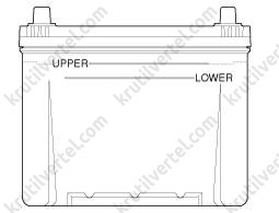 2. Если уровень электролита ниже линии «LOWER», добавьте воды, пока уровень электролита не достигнет уровня «UPPER».