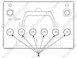 - Снимите крышки ячеек (A), а затем осторожно добавьте дистиллированную или очищенную воду, чтобы довести уровень электролита в каждой ячейке до линии «UPPER».