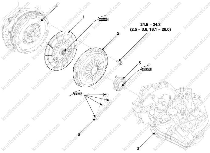 - Рабочий цилиндр сцепления и выжимной подшипник