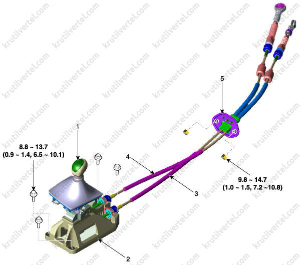 4. Рычаг и трос переключения передач