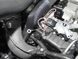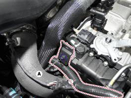 5. Отсоедините шланг сапуна (А) от крышки блока управляющих клапанов.