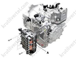 6. Отверните болты крепления и снимите крышку (А) блока управляющих клапанов.