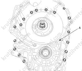 4. Извлеките гидротрансформатор (А) из корпуса коробки передач.
