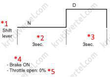 - Нажмите педаль тормоза и переключайте передачи четыре и более раз, как показано на иллюстрации ниже.