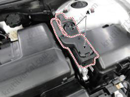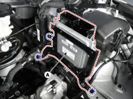 4. Отверните болт и гайку крепления, затем снимите TCM (A).