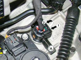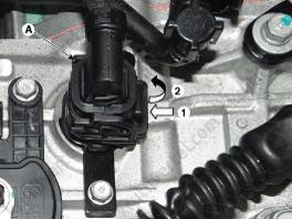 4. Отсоедините разъем (А) электромагнитного клапана, для этого: