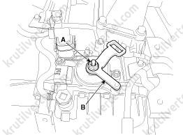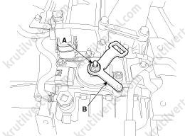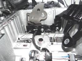 3. Отверните два болта крепления и затем снимите датчик частоты вращения первичного / вторичного вала (В).