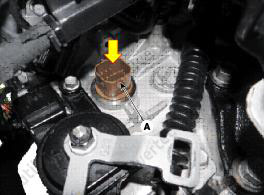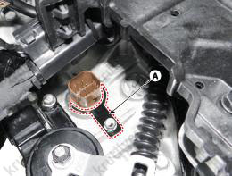 5. Выверните сливную пробку ATF (A) и слейте жидкость, затем установите сливную пробку на место.