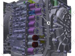 11. Снимите электромагнитный клапан управления линейным давлением (А).