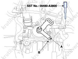 9. Извлеките специальный инструмент (09480-A3800) из регулировочного отверстия.