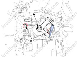 Момент затяжки: 17,7 – 24,5 Н·м (гайка А) и 9,8 – 11,8 Н·м (болты В).