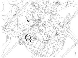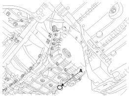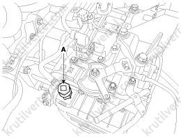 1. Выверните болт с проушиной (А) и долейте 0,7 л оригинальной ATF SP-IV через заливное отверстие для ATF.