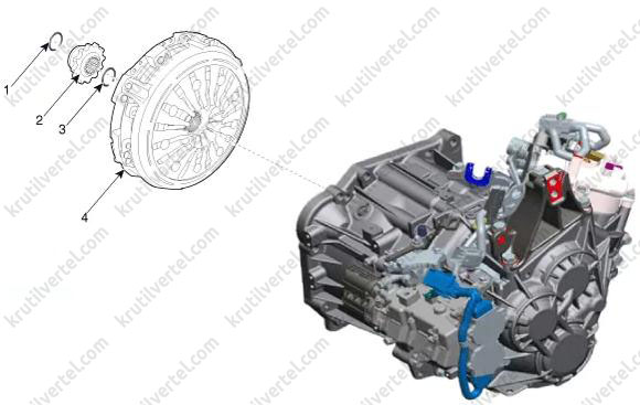 Двойное сцепление в сборе и выжимной подшипник Hyundai Sonata LF с 2014 года (+ обновления 2017 года)