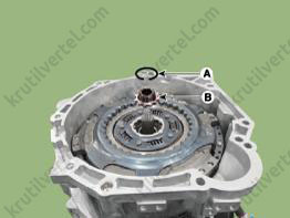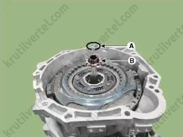 2. Снимите ступицу вала (B), предварительно сняв удерживающее кольцо (A).