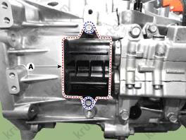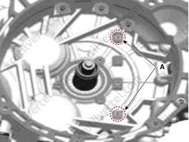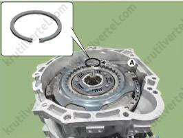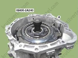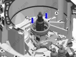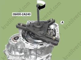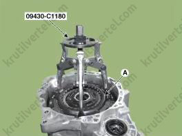4. Снимите двойное сцепление в сборе (А) при помощи специального инструмента (09430-C1180).