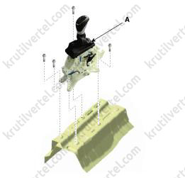 6. Отверните болты крепления и снимите рычаг переключения передач в сборе (A).