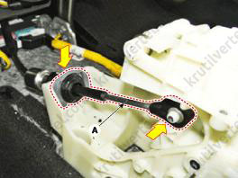 - Отсоедините наконечник троса переключения передач (А) от штифта (стрелка 3).