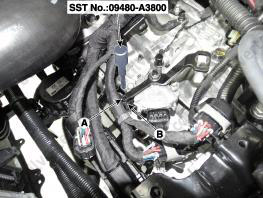 4. Отсоедините электрический разъем (A) рычага переключения передач.