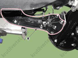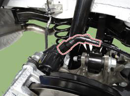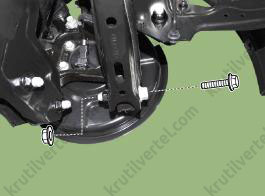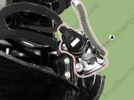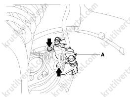 4. Отверните болты крепления держателя тормозного суппорта в сборе и затем закрепите узел держателя (A) проволокой.
