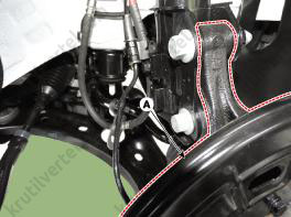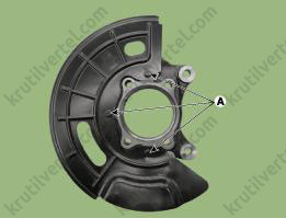 3. Отверните болты крепления держателя тормозного суппорта в сборе и затем закрепите узел держателя (A) проволокой.