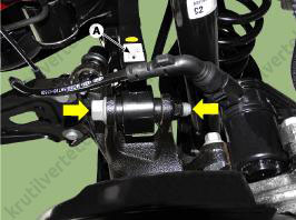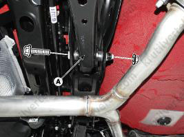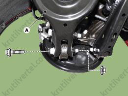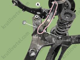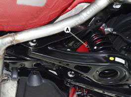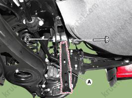 3. Отверните болты крепления (А), затем снимите задний амортизатор.