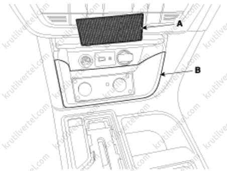 2. Извлеките резиновый коврик (А). Снимите поддон (В) консоли с помощью специального съемника.