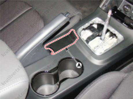 6. Извлеките лоток (A) из подлокотника на консоли.