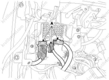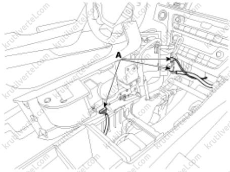 2. Отсоедините электрические разъемы (А) панели управления кондиционером и отопителем.